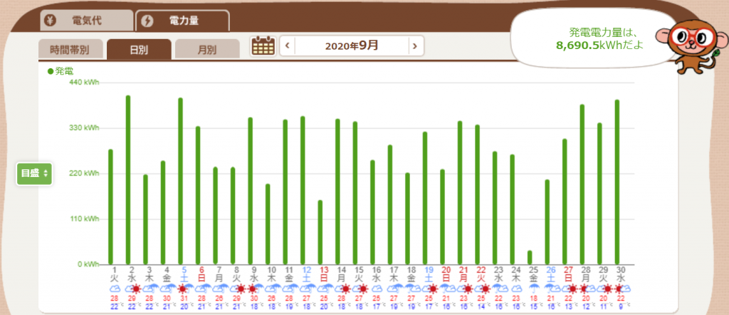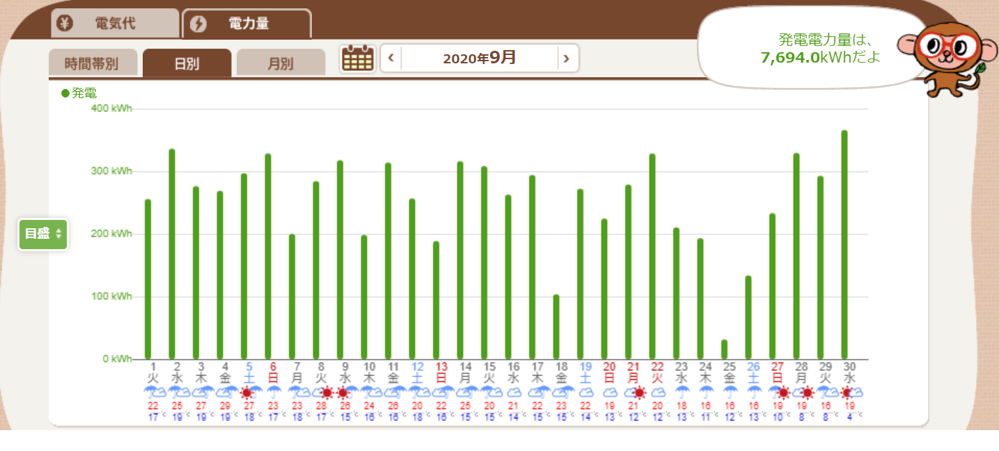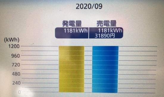2020年9月の発電実績です。