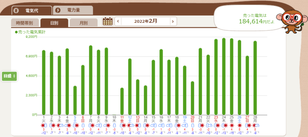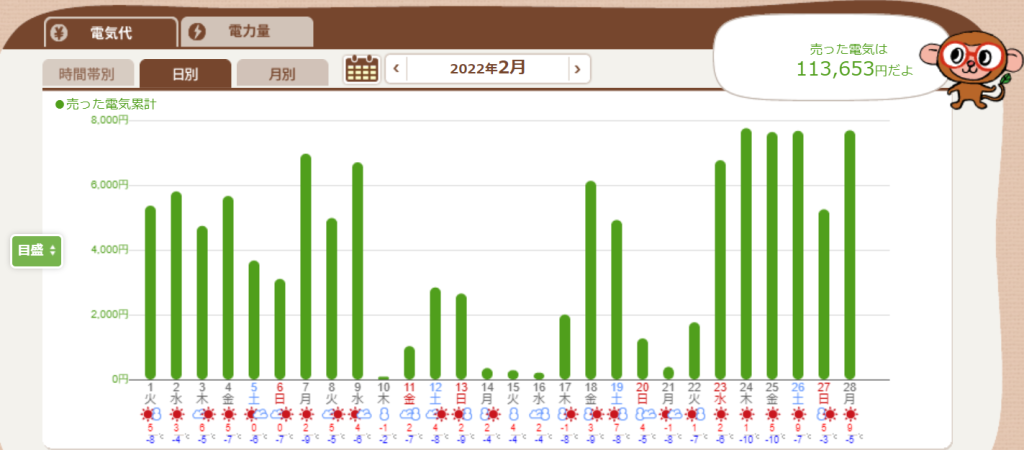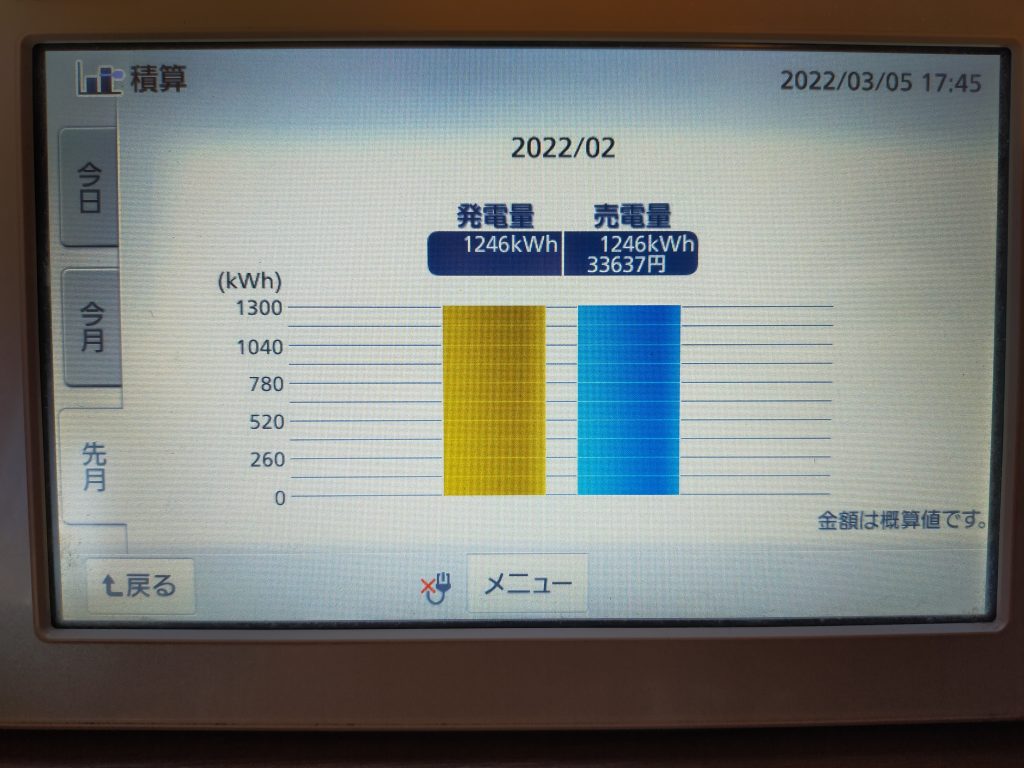 2022年2月の発電実績です。