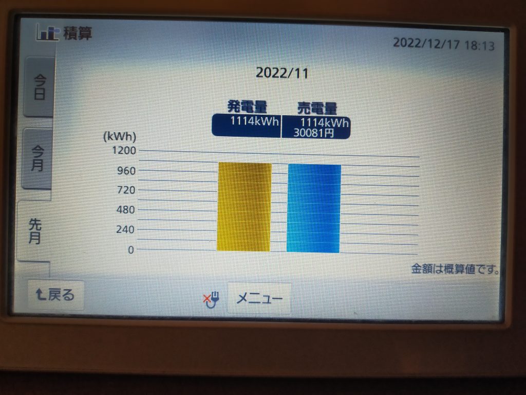 | 自宅屋根 | 24,986円/925kwh | 30,081円/1,114kwh | 120% |