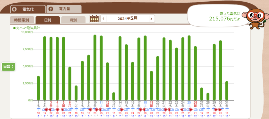 今月は良く発電してくれました。単月で50万オーバー!太陽の恵みに感謝です。